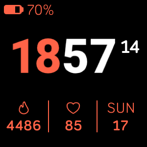 ELEGANT & CLASSIC DESIGN A simple and modern digital clock face with three key stats shown. View the day of the week and date. Customize the colors to make it your own.